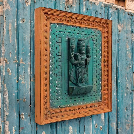 Hand-Carved Wooden Wall Frame | Antique Green Vintage Decor