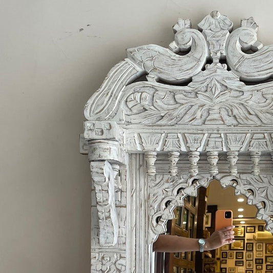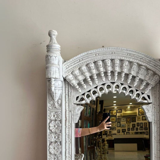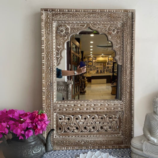 Jharokha Mirror Frame - Large Vintage Mirror with Antique Carved Design
