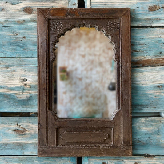 Jharokha Mirror: Distressed Rustic Elegance Indian Wall Mirror Jharokha Mirror | Vintage Wall Decor Mirror | Rustic Antique Decor Mirror