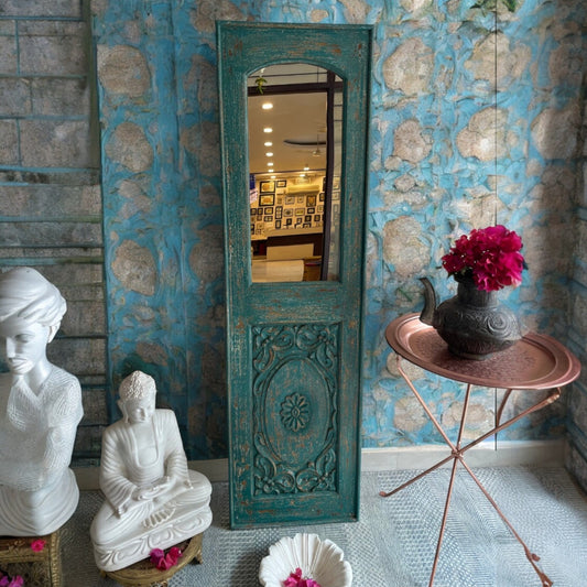 Long standing Handcarved Wooden Long Jharokha Mirror Indian Wall Mirror Jharokha Mirror | Vintage Wall Decor Mirror | Rustic Antique Decor Mirror