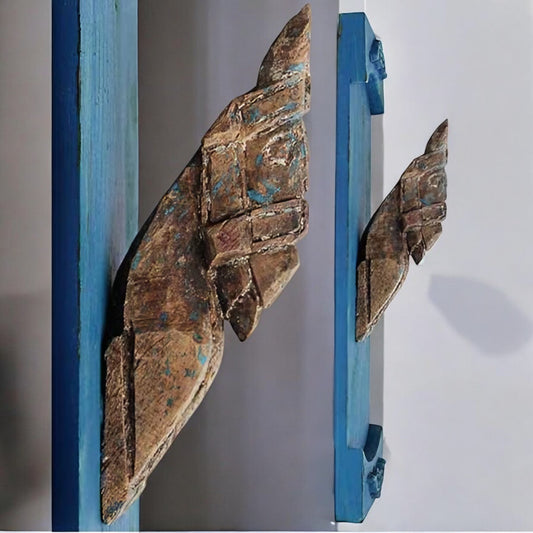 Rustic Hand-Carved Wall Decor | Blue Antique Wooden Panels
