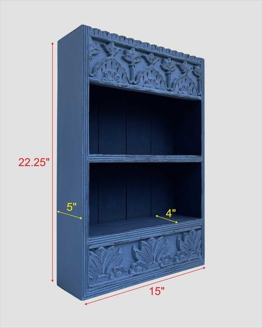 Vintage Rustic Blue Hand Carved Wooden Wall Shelf Cabinet