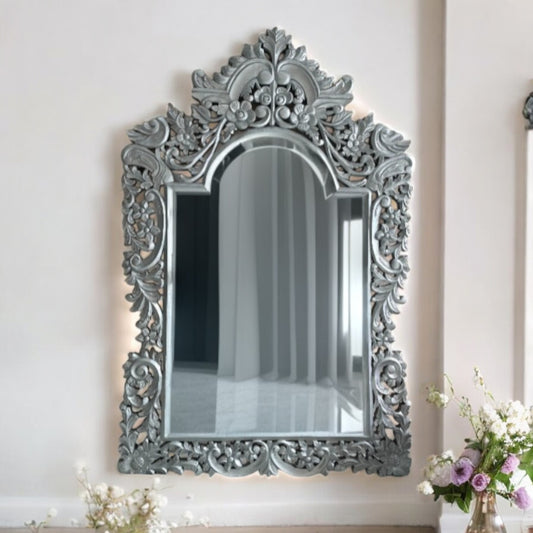 Hand-Carved European Style Vanity Mirror Frame – Carved Indian Wall Mirror