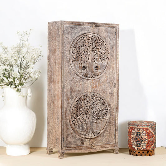 Hand-Carved Mango Wood Wardrobe – Tree of Life Design 180cm | Artisan Craftsmanship
