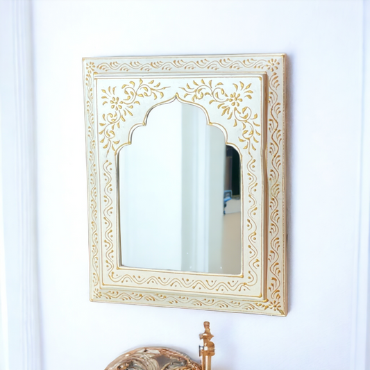 Hand-Painted White & Golden Mirror Frame