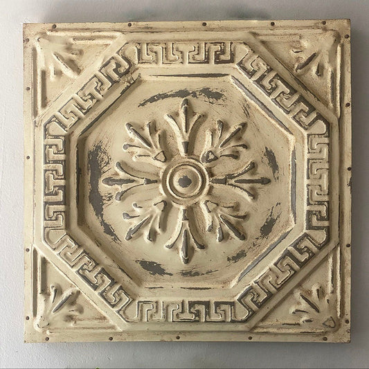 Square Distressed White Carved Panel Handcrafted Wooden Carved Panel | Vintage Wall Decor & Antique Wall Art