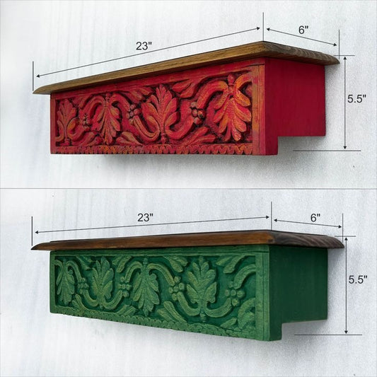 Green Carved Wall Shelf