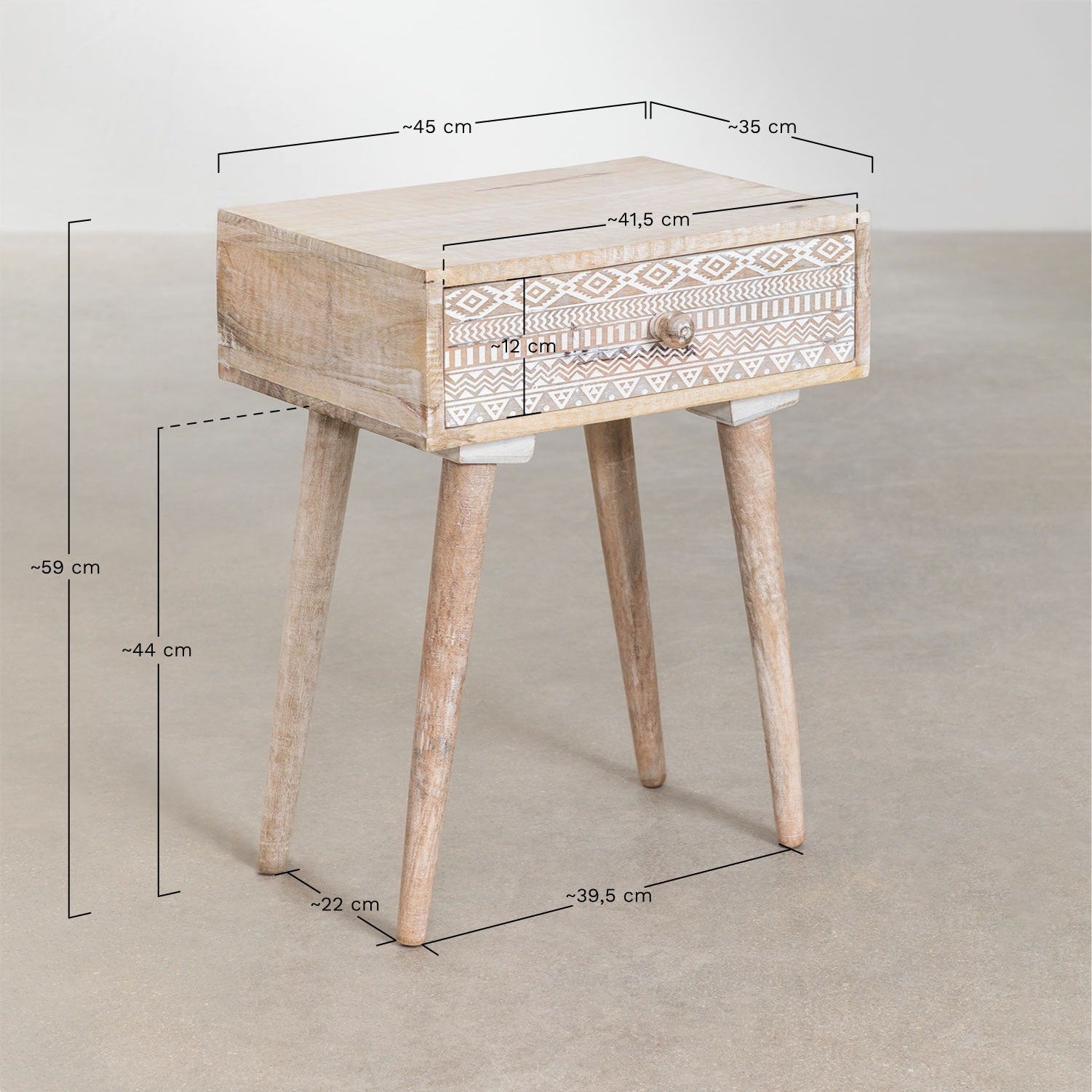 Whether you're seeking a standalone statement piece or looking to complement your existing boho decor, our Carved Mango Wood Bedside Table promises to enrich your bedroom environment. Experience the fusion of boho style and exceptional craftsmanship - shop now and transform your sleeping space into a haven of artistic charm.